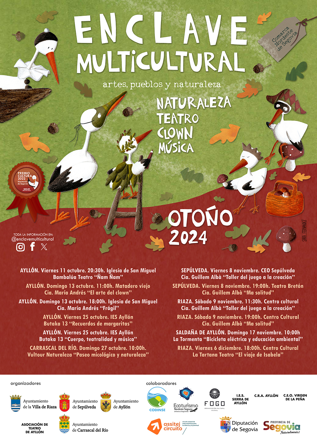 Os compartimos el cartel de actividades de Enclave Multicultural para este otoño, que arrancará este fin de semana en Ayllón con dos actuaciones (viernes y domingo) en la Iglesia de San Miguel que completan junto con Teatro Almuérdago (sábado) el cartel de 'Locos por el teatro'.