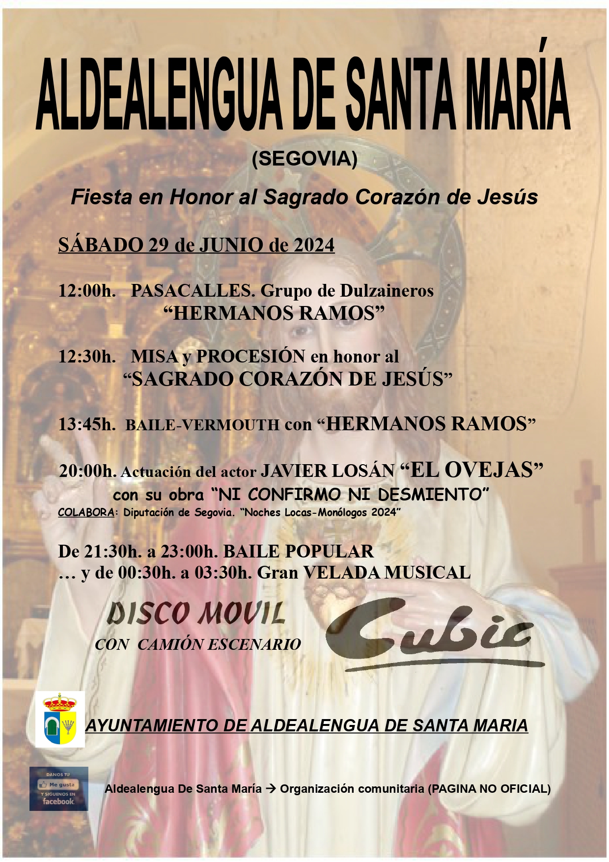 Este sábado 29 de junio tendrán lugar en Aldealengua de Santa María las Fiestas en honor al Sagrado Corazón de Jesús, teniendo la siguiente ruta de actividades: